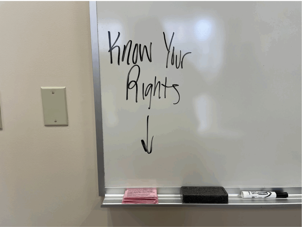“Know your rights” information cards readily available in a Boston University classroom. Photo Courtesy of Daniela L. Ginsburg/BU News Service.