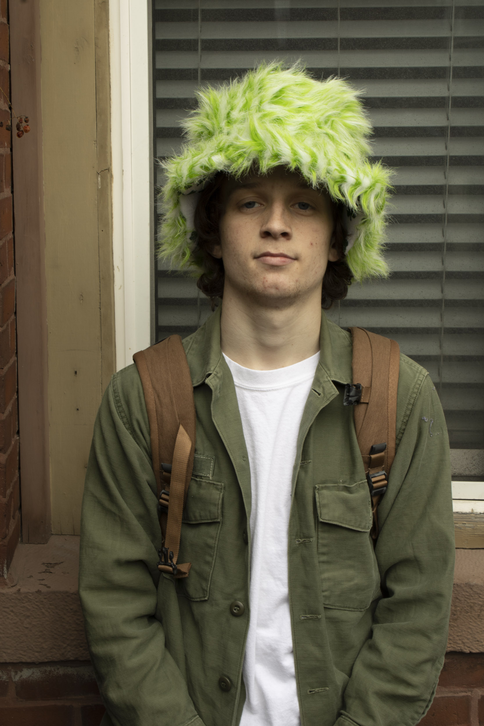 Will Kennedy confidently sports a fuzzy hat that steals the show. (Photo by Zeinab Diouf/BU News Service)